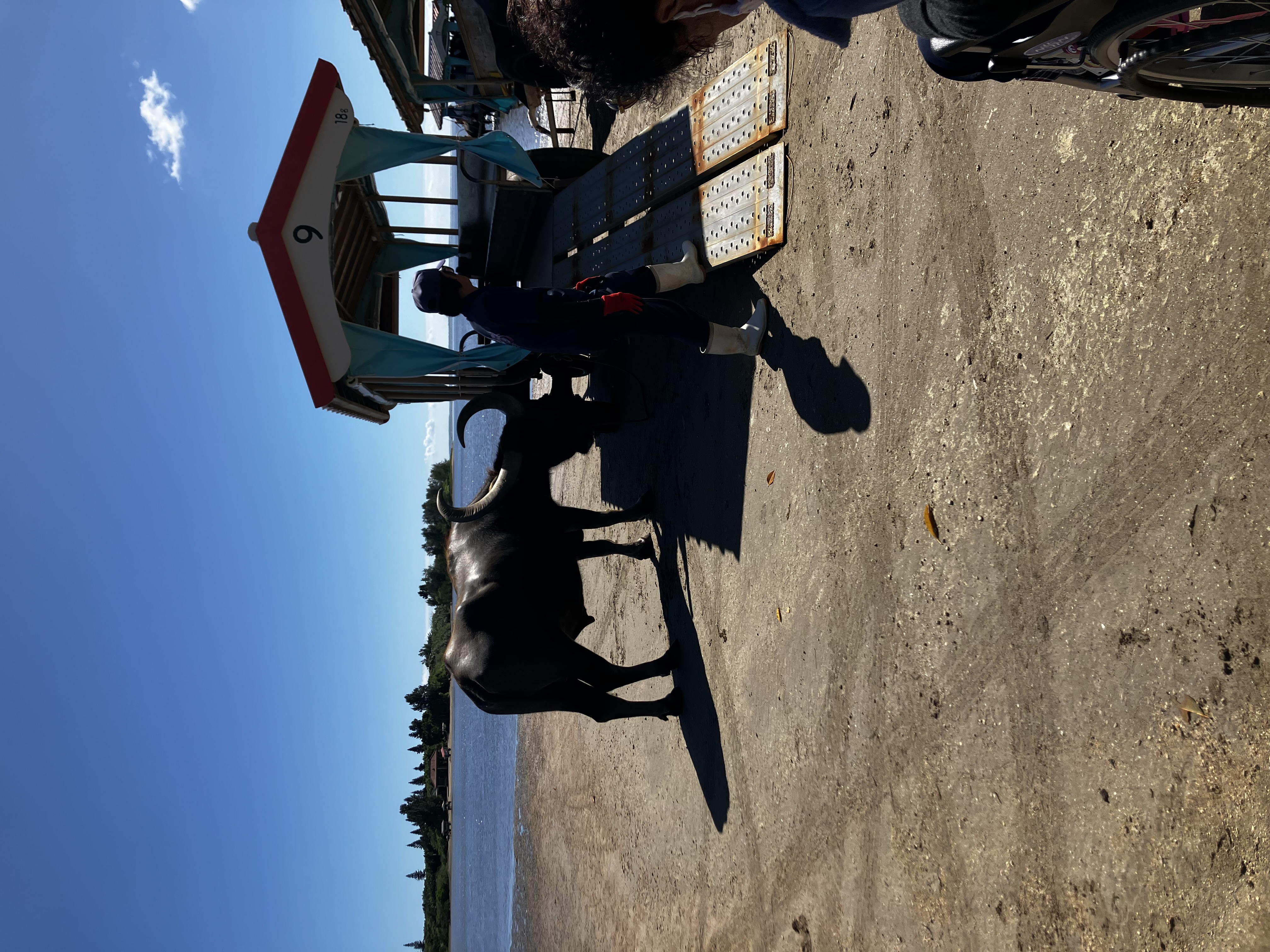Take a private bus to the Yubu Island water buffalo cart boarding area.
