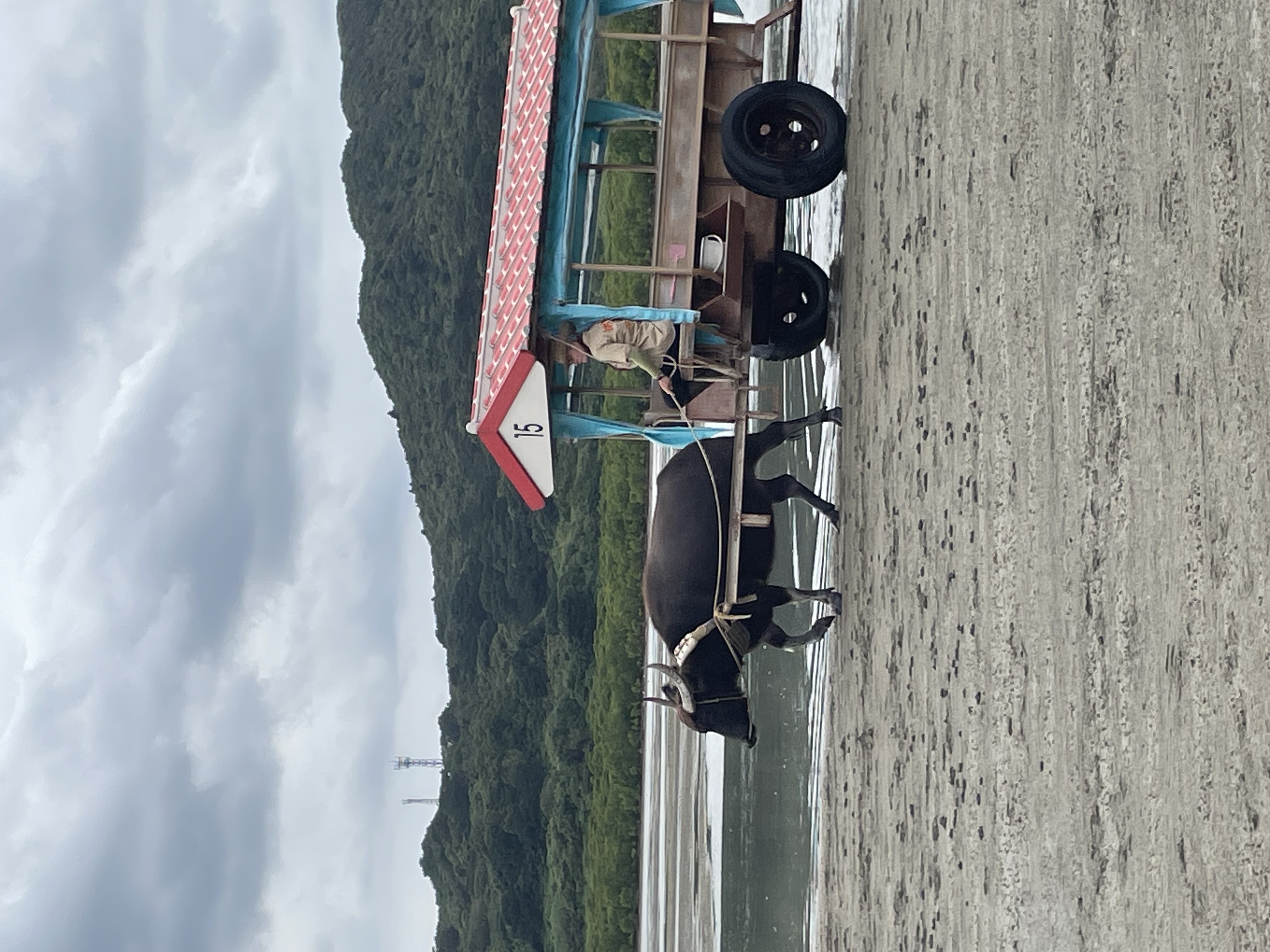 Cross the sea to Yubu Island by water buffalo cart