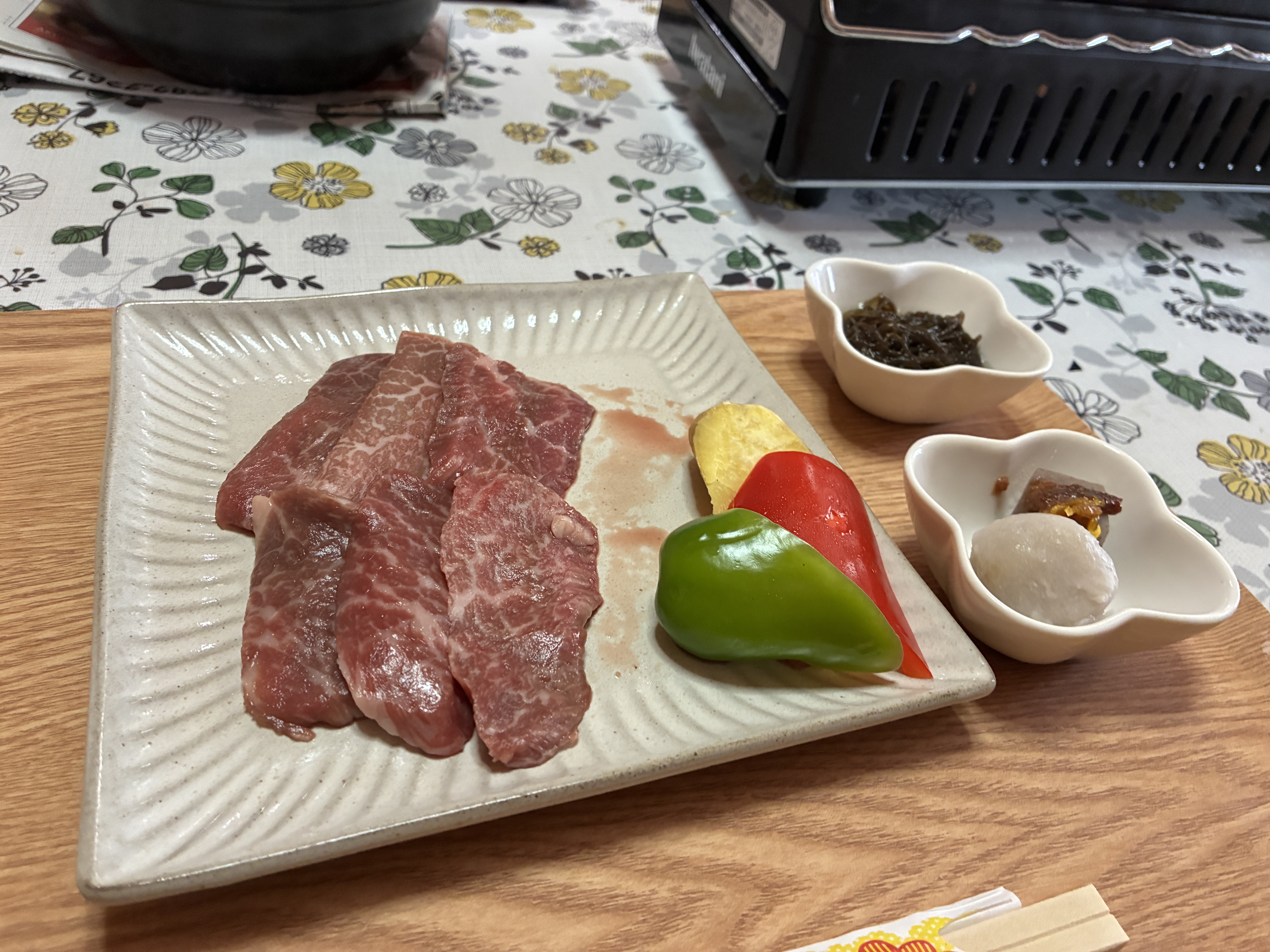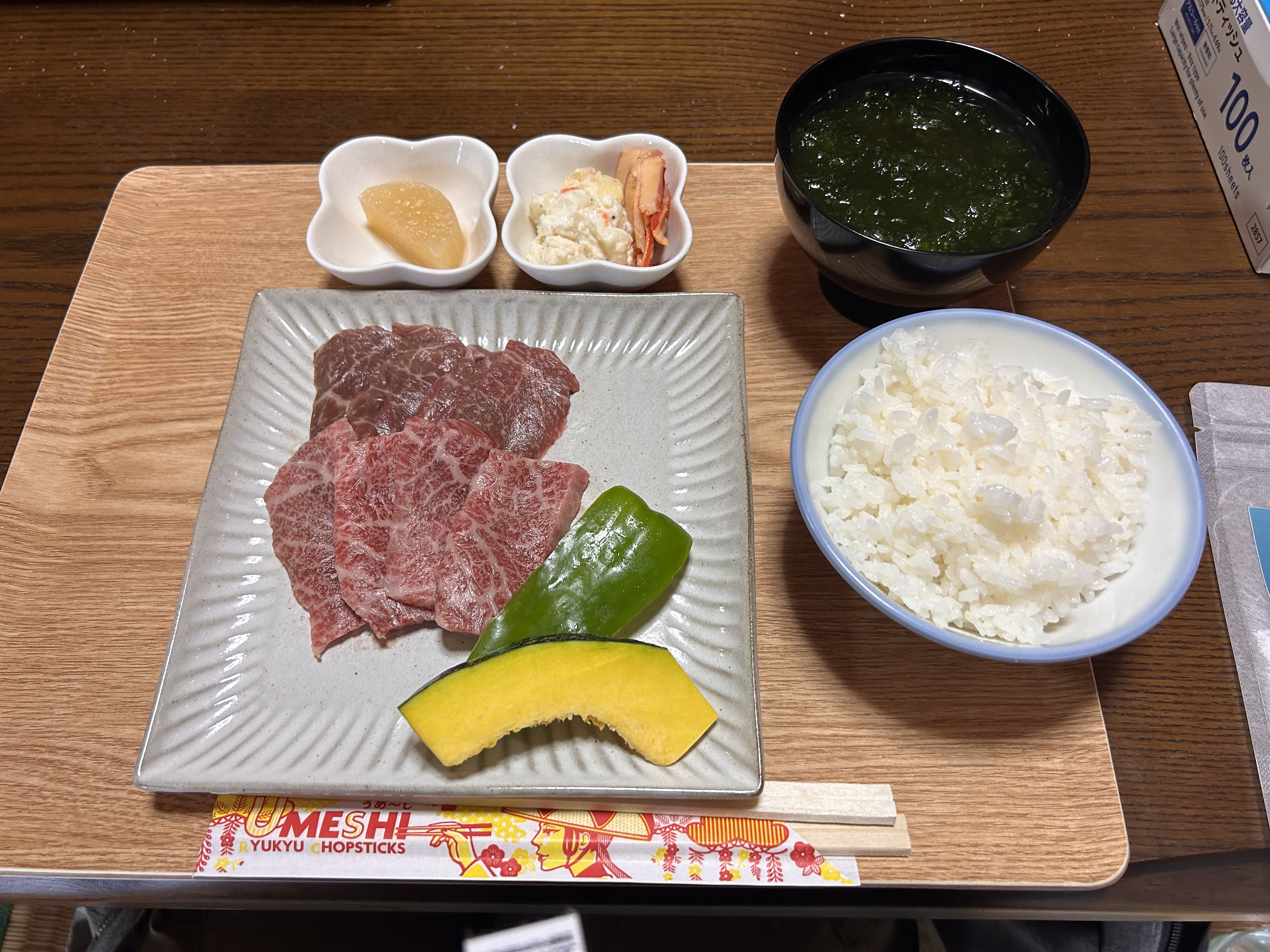 昼食は自分で作った塩で焼肉ランチ!