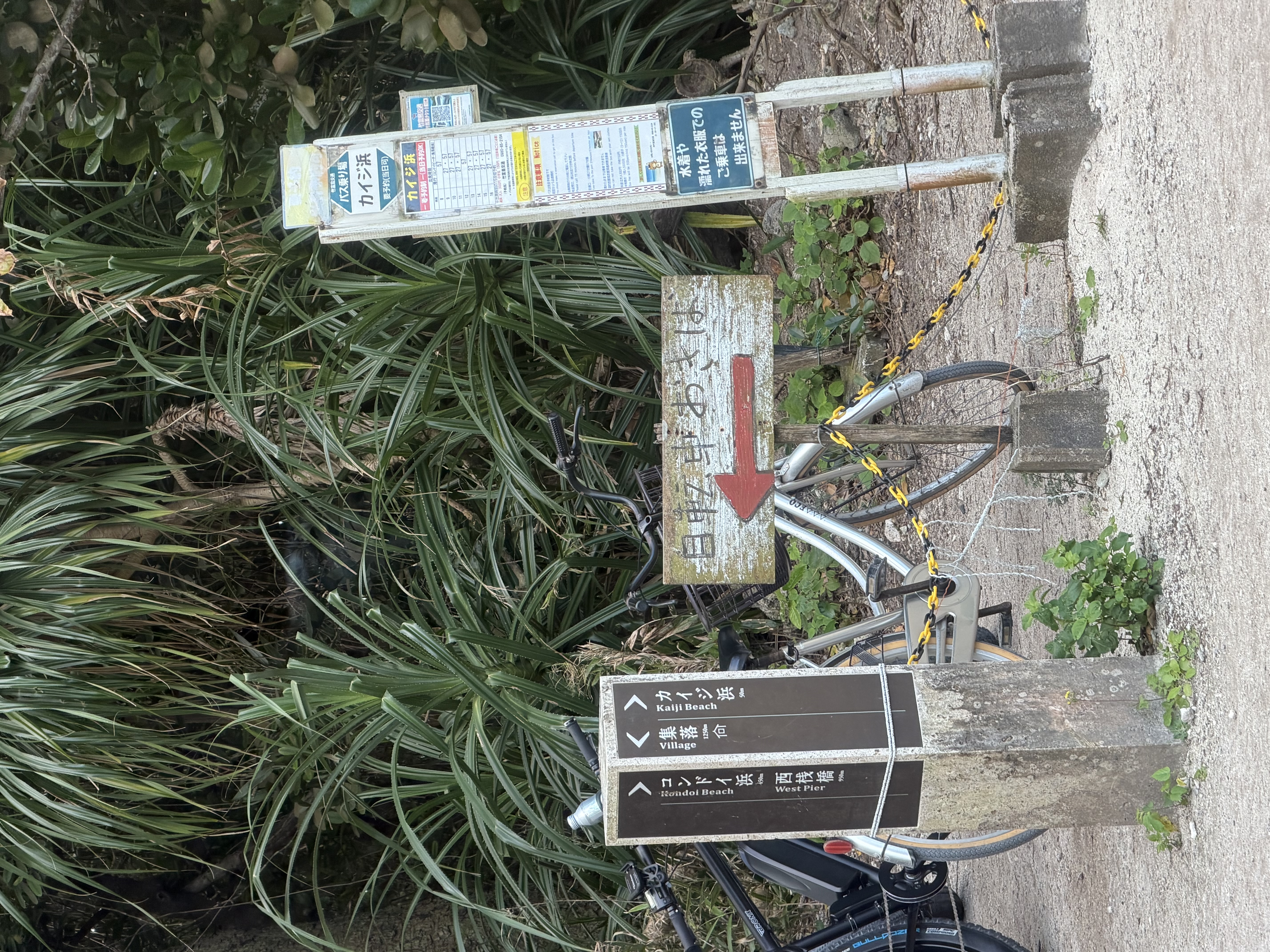 カイジ浜(星砂の浜)で星砂探し=コンドイビーチ(車窓)=集落